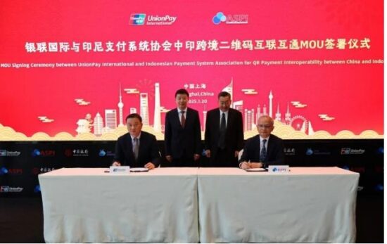 和平日报, 2025年1月23日, 1月20日,银联国际、印尼支付系统协会(ASPI)、蚂蚁国际、中银香港雅加达分行在上海联合宣布,将在中印(尼)两国央行指导下,共同推动两国跨境二维码互联互通,通过双向大规模开放二维码受理网络,大幅提升两国人员跨境支付体验。中国银联党委书记、董事长兼银联国际董事长董俊峰,银联国际首席执行官王立新,ASPI董事长Santoso,蚂蚁国际首席财务官周毅,中国银行上海分行行长王晓、中银香港雅加达分行行长孙尚斌现场见证。