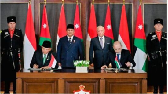 和平日报, 2025年4月16日, 印度尼西亚共和国总统普拉博沃·苏比安托和约旦国王阿卜杜拉二世·本·侯赛因见证了印度尼西亚与约旦哈希姆王国签署四项战略谅解备忘录(MoU)。签署仪式于 2025 年 4 月 14 日星期一在安曼侯赛尼耶宫举行,现场气氛充满国家间伙伴关系和友谊精神。