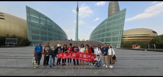 和平日报,2025年4月16日,今天已到达河南郑州市区,导游带我们参观郑州的郑东新区,