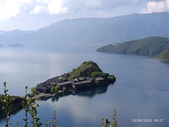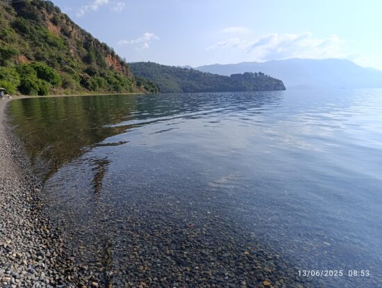 当晨曦初露,薄雾如轻纱般笼罩湖面,里格半岛的三面环水之姿若隐若现,与格姆女神山倒影相映成趣;夕阳西下时,女神湾则上演着“金辉洒湖面”的绝美日落盛景。