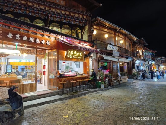转经筒的鎏金与酒吧的霓虹在夜空共舞,见证着这片秘境的发展智慧——丽香铁路上飞驰的列车载来追寻“心中日月”的旅人,月光广场上游客与藏民共舞的剪影投向千年石板路,松茸直播间里牧民的笑声穿越雪山…
