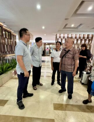 有缘的是:湛江联谊会现任会长陈华杰与江门印联会会长周兆祥在三个月前出席广东省归侨侨眷代表大会时已经认识了,所以这次在湛江重逢,大家都分外开心,侨友们欢聚一堂,其乐融融!我们到达湛江联谊会帮我们预订的酒店时,陈华杰会长与余孟利前任会长已在酒店等候多时,在协助我们办理入住手续后,大家放下行李就一同前往吃饭的酒楼。