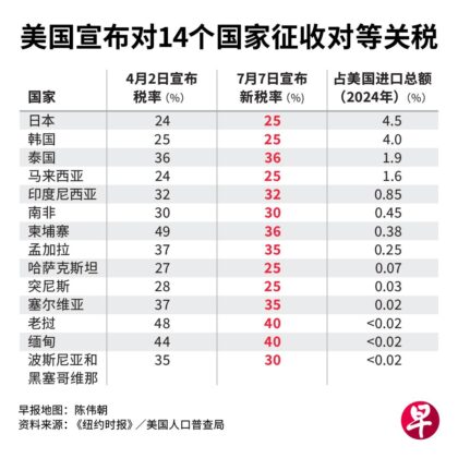 法塔斯预测,日韩不会轻易屈服,接下来还会争取把关税水平推回到4月2日以前。“它们比其他小国如越南有实力,美国也必须灵活伸缩。”