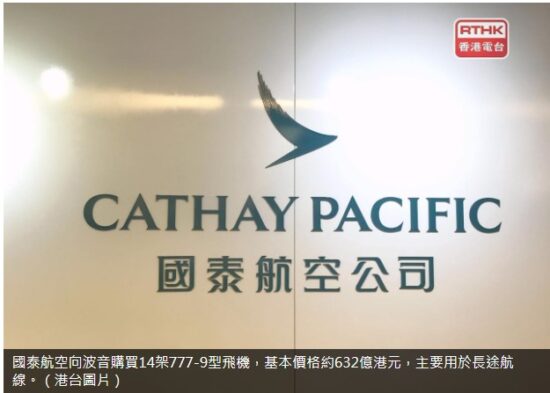 和平日报, 2025年8月7日,國泰航空宣布,向波音購買14架777-9型飛機,基本價格81億美元,折合約632億港元,製造商將給予大幅價格優惠,預料2034年或之前付運;集團對這款客機的訂購總數增至35架。另外,國泰獲波音授予購買額外最多7架同類型飛機的權利。