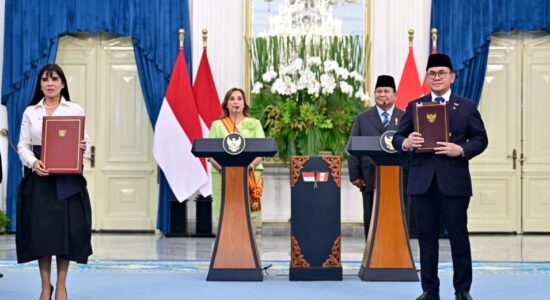 和平日报, 2025年8月13日, 2025年8月11日星期一,在秘鲁共和国总统迪娜·埃尔西莉亚·博卢阿尔特·泽加拉对秘鲁进行国事访问期间,印尼和秘鲁正式签署了三份战略合作文件。其中一份文件是《印尼-秘鲁全面经济伙伴关系协定》(IP CEPA),该协定旨在扩大两国之间的市场准入和贸易活动。