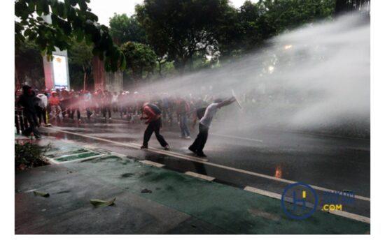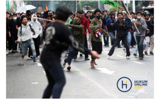 青年运动路(Jalan Gerbang Pemuda)周围的冲突愈演愈烈。警察举着盾牌向前推进,而学生们则投掷鞭炮,并用木板和街椅搭建临时路障进行反击。警笛声、催泪瓦斯爆炸声和喊叫声交织在一起,遮蔽了雅加达午后的天空。