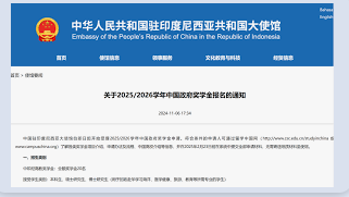 和平日报, 2025年10月28日, 中国驻印度尼西亚大使馆自即日起开始受理2026/2027学年中国政府奖学金申请。符合条件的申请人可通过留学中国网(www.campuschina.org)了解各类奖学金项目介绍、申请办法及流程、中国高校介绍等信息,并在2026年2月8日前在系统中提交全部申请材料,无需寄送纸质材料至使馆。