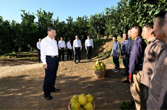 和平日报,2025年11月7日,习近平总书记在广东省梅州市梅县区雁洋镇考察南福金柚种植基地,了解当地推进乡村全面振兴等情况。