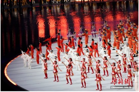 11月9日晚,第十五届全国运动会开幕式在广东奥林匹克体育中心举行。图为现场表演。中新社记者 盛佳鹏 摄