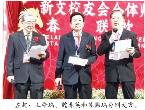 值此 新春佳节之际,她向大 家拜年,祝愿全体校友 马年大吉、生意兴隆、 身体健康、阖家平安。 苏熙瑞指出,新文 校友会秉持“团结、友 爱、互助、沟通”的宗 旨。本次春节联欢为久 未谋面的校友提供了相 聚畅谈的机会,进一步 加深彼此情谊。他强 调,校友们今日的成就 离不开昔日恩师的谆谆 教诲,应继续弘扬中华 民族尊师重道、敬老爱 幼的传统美德。最后, 他祝愿大家新春快乐、 身体康泰、家庭幸福、 马年吉祥。