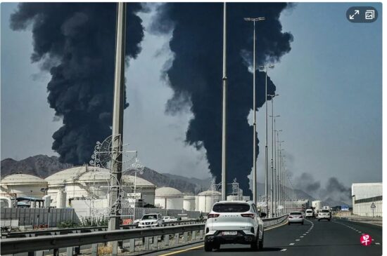哈尔克岛遇袭后不久,阿联酋主要石油中心富查伊拉(Fujairah)星期六(14日)突然发生火灾,部分石油装载作业暂停。阿联酋当局说,火灾是拦截来犯无人机后,碎片掉落而引起的。当局没说明详情,只说没有人员伤亡。