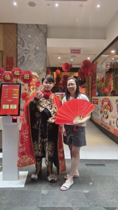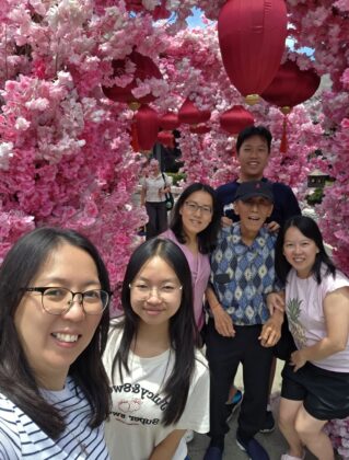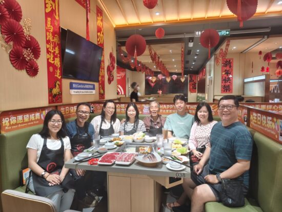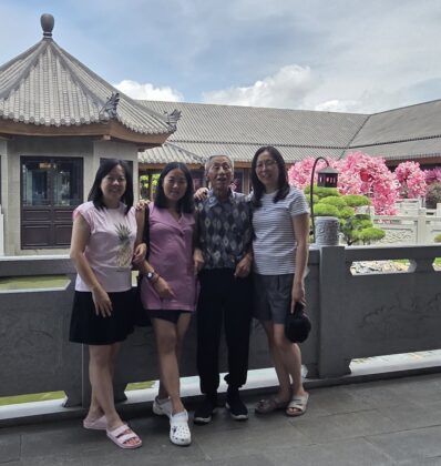 和平日报,2026年4月17日,萬隆王氏三姐妹、王麗珠與丈夫陳志輝、女兒陳慧玲.王愛珠與丈夫謝仕雄、男兒謝泉晟.王玉珠陪同樂齡父親於3月21日旅遊到雅加達Gandaria Mall 中華傳統火鍋(海底撈)餐館享用美食.顧客排隊慶佳節.