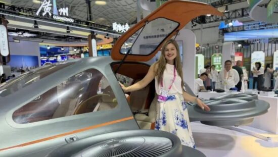 和平日报, 2026年4月18日,(综合报道) : 一款飞碟造型的电动垂直起降飞行器于近日在第六届中国国际消费品博览会上首次亮相。