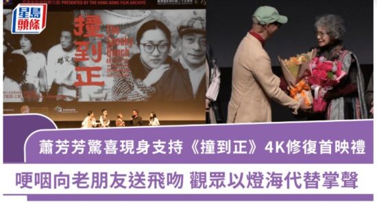 許鞍華導演今日(25日)攜同關錦鵬導演、劉天蘭、李樂詩博士出席香港流行文化節2026「奇幻電影之旅」《撞到正》4K數碼修復版全球首映禮,主創團隊於映前談與觀眾見面期間,更驚喜邀得久未露面的蕭芳芳現身。蕭芳芳於全場觀眾亮起手機燈組成燈海代替掌聲下登場,劉天蘭貼心地提醒觀眾:「唔好拍手掌,聲浪會令芳芳姐返去暈兩個禮拜,用燈光同愛心去歡迎。」蕭芳芳出場後仍有觀眾難忍興奮歡呼拍掌,芳芳姐一邊向一眾老朋友送飛吻、一邊哽咽表示:「好多謝大家鼓掌。我今日覺得好幸福、好幸福!我講唔出⋯⋯因為46年前拍咗呢套戲。」