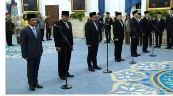 普拉博沃在雅加达总统府主持了多位新官员的就职仪式。总统共任命了六位新官员加入红白内阁。